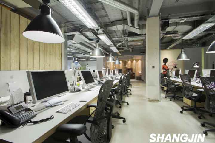 美式风格工业手法,上海办公家具厂整体以粗矿的手法制作,保留原砖墙,将天花板整理干净,辅以全室的水泥