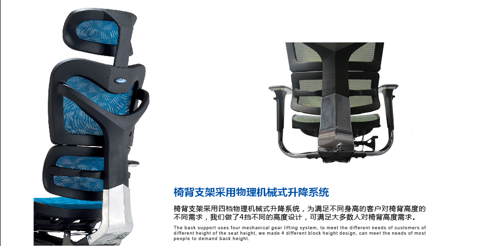 - 上金办公家具人体工学椅采用同步倾仰,一杆式底盘;后仰弹力调整;座垫可高低调整;结构性强,背、坐面分别为呼吸式透气阻燃网布、定型泡棉的椅座柔软舒适;自动弹性腰枕;连体扶手。